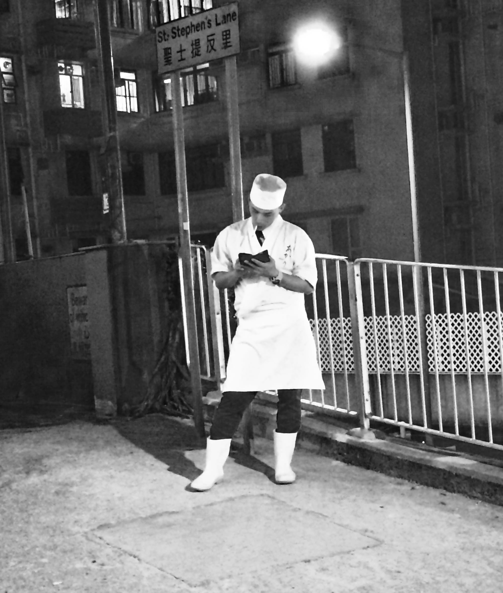 This collection of photos of Hong Kong workers was taken while capturing daily life in the city sporadically over years. What drew me to these moments was perhaps a simple interest in how things are done in a place that was new to me; a boyish curiosity about what it might be like to practice a hands-on trade; and a more mature appreciation of everyday labour and how it is carried out—the unassuming diligence that underpins the functioning of a metropolis.