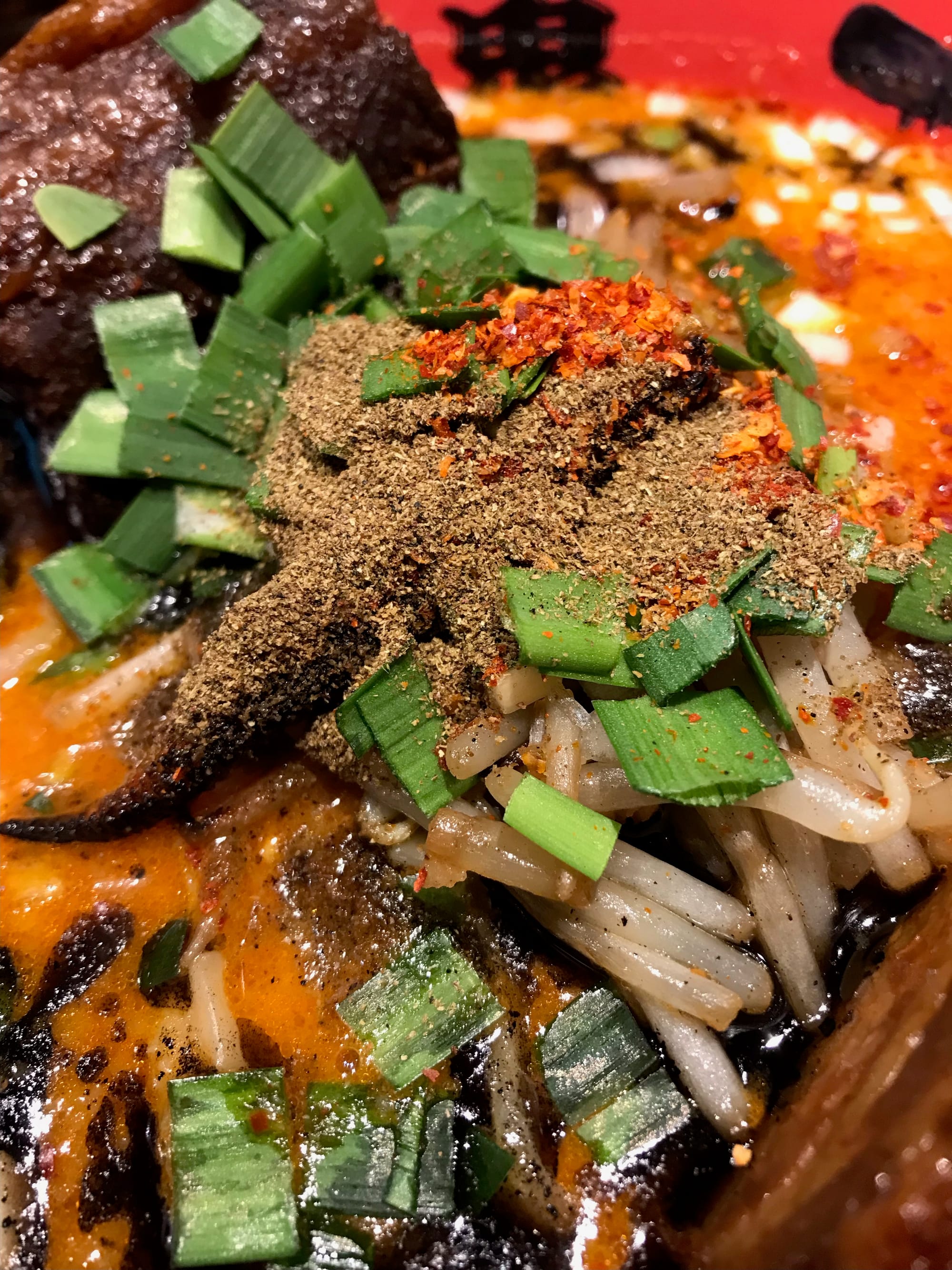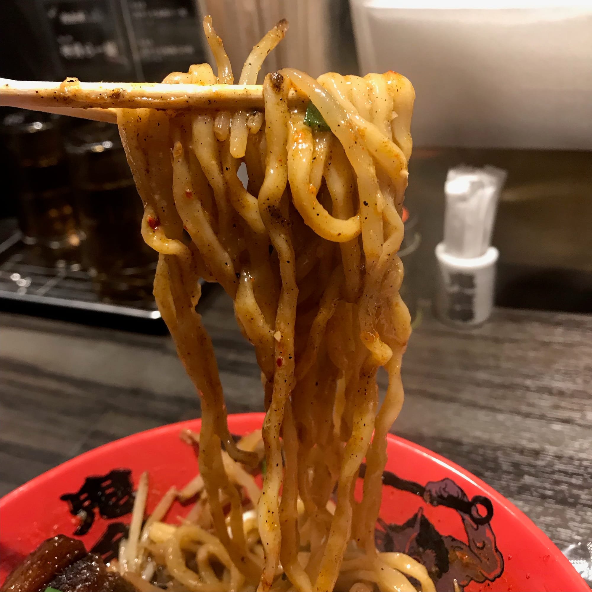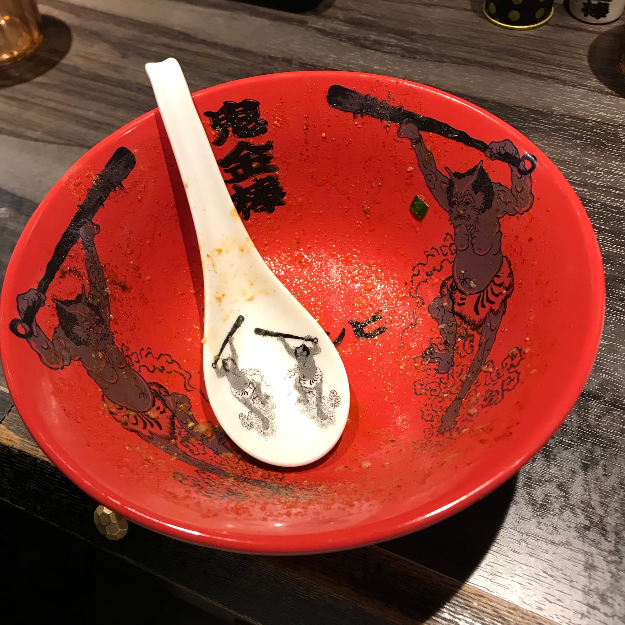 You are supposed to be in jigoku, or Japanese Buddhist hell. One travel writer described the atmosphere as “festive demonic kitsch.” Perhaps the decor is a touch arch, yet the mood does not feel gimmicky, as if it were all some capsaicin cosplay. The staff are serious, even when refilling an empty water pitcher. Waiting for my order to arrive, I look around to see other diners’ reactions. Why are everyone's forearms sweating?