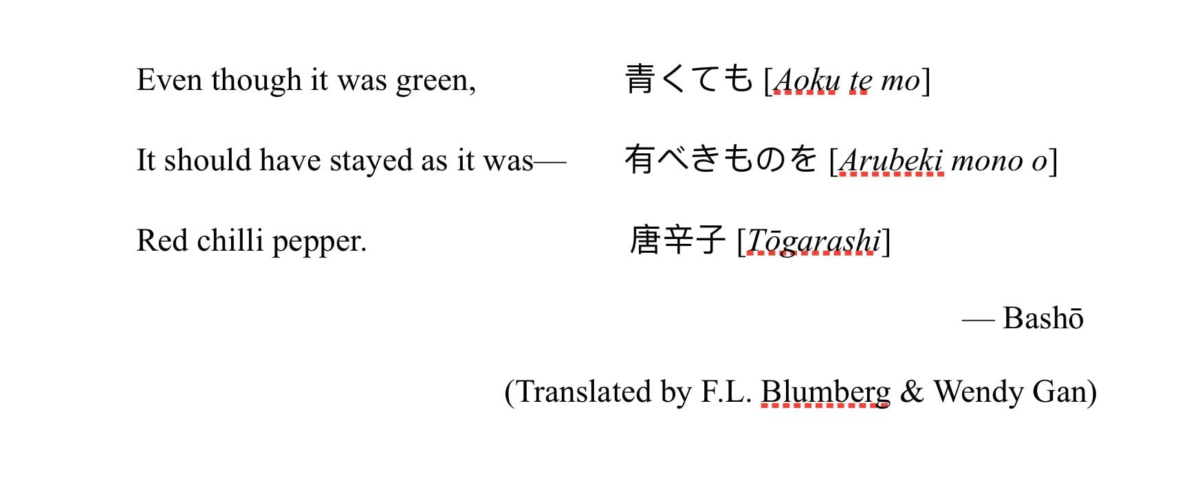 A peppery blaze creates a paradox: the palate is willing but the flesh is scorched. The drumbeat urges you on, though, and reminds you: this is a ritual. You have asked to know chilli, to let its spirit meet yours. While it can be painful, it is also life giving, awakening. It can make us recoil, then call us back for more. Conversely it can appeal to us, then keep us away. The poet Bashō recorded his painful attraction to a spicy capsicum: