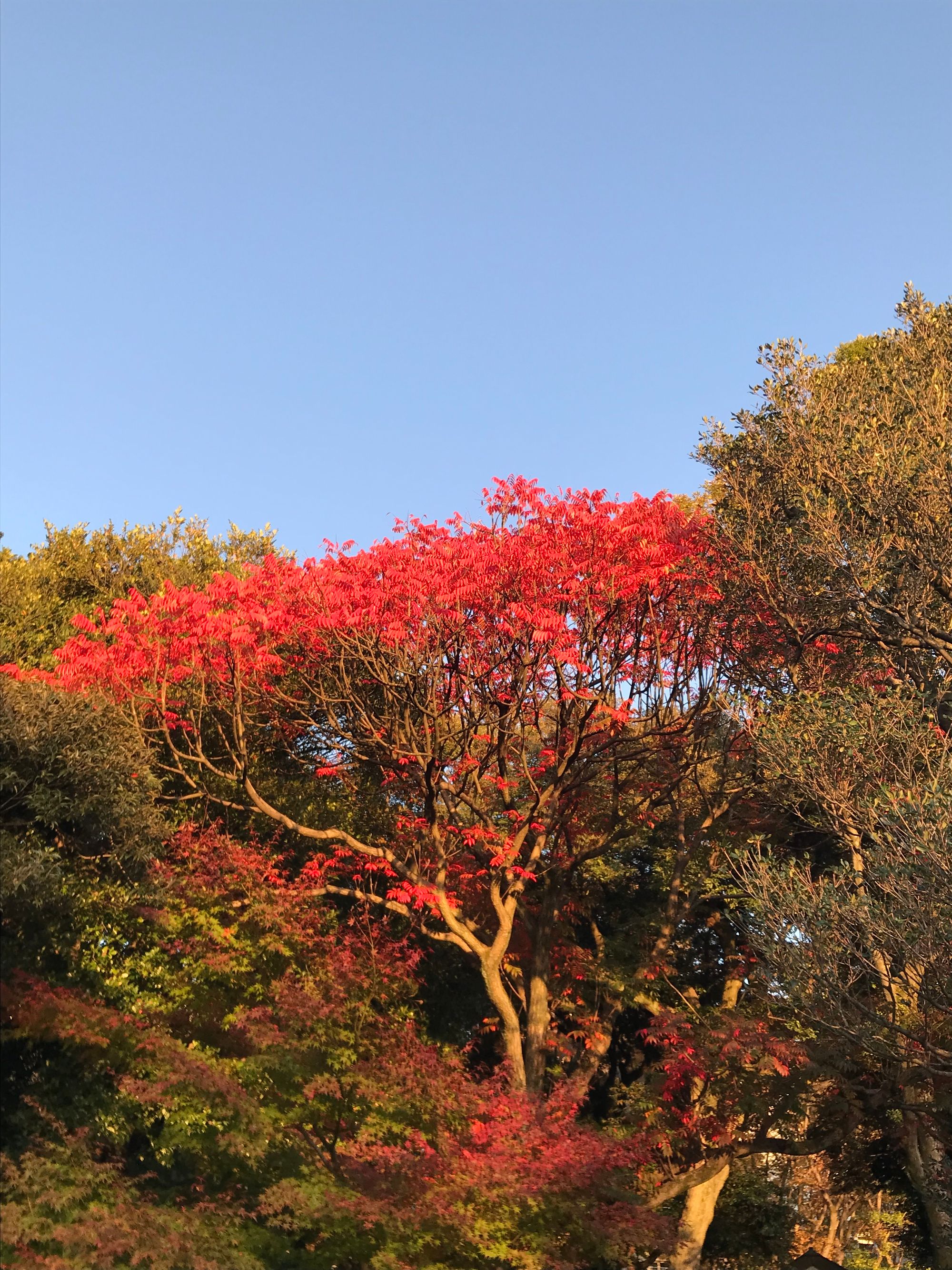 The approach is pedestrian enough. You walk from the metro station past cars, people, buildings. It’s anonymous urban blandness. A voice droning through a loud-hailer assails the air. You sense crowds and crowd control at work and groan inwardly. Then you catch your first glimpse and you gasp. The ginkgos have turned the boulevard into a golden cathedral. You cannot help but slow your step, slow your breathing, and try to hold onto their beauty for eternity. The authorities have turned a large section of the road over to the crowds and we spill onto the tarmac to catch the best views. We are quite a throng, but it’s quiet and the mood is somewhat reverential. The ginkgos against a cloudless blue sky are otherworldly. Staring at them, we are transported to a different realm, where for a brief moment our focus is not on ourselves but on something transcendent and ablaze—a beauty outside of us, more gorgeous than we could ever be.